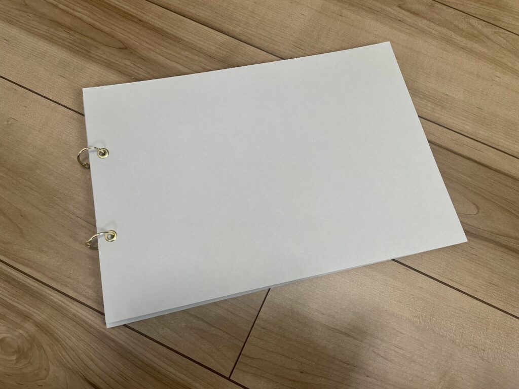 作りとしてはA4横開きになっていて、制作のために購入したものと一緒に実物の写真はブログ後半に載せます。