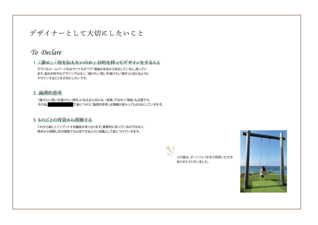 「自分はこんな人」「こんなデザインができます」というのが伝わらないと意味がないです。