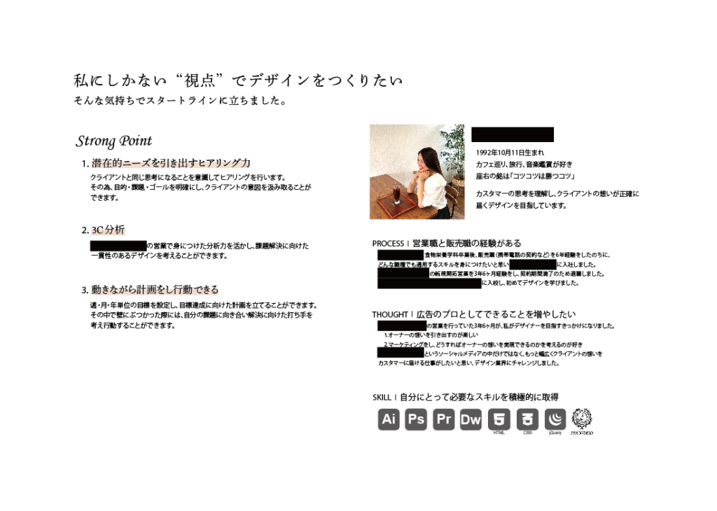 なので、私は履歴書や職務経歴書に書ききれなかったことをアピールする場として制作に取り掛かりました!